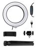 Лампа кольцевая светодиодная 16 см, 6 Вт, 2700-6400 К, штатив наст., диммер, USB, TDM