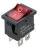 Выключатель клавишный KCD1-201N 250В AC/DC, 2P, 6А, (4с), ON-OFF, черный корпус, красная клавиша с LED подсветкой, Mini TDM