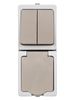 Блок (вертикальный) выключатель 2-кл. + розетка 2П+З с з/ш БКВР IP54 серый "Вуокса" TDM