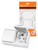 Блок (горизонтальный) выключатель 1-кл. + розетка 2П+З с з/ш БКВР IP54 белый "Вуокса" TDM