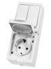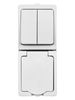 Блок (вертикальный) выключатель 2-кл. + розетка 2П+З с з/ш БКВР IP54 белый "Вуокса" TDM