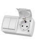 Блок выключатель 2-клавишный 10А + розетка 2П+З 16А с защитными шторками с крышкой IP54 белый "Селигер" TDM
