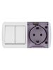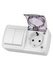 Блок выключатель 2-клавишный 10А + розетка 2П+З 16А с защитными шторками с прозрачной крышкой IP54 белый "Селигер" TDM