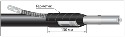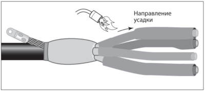 Надеть на конец разделанного кабеля перчатку, надвинуть её с усилием до упора на корешок разделки.