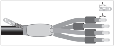 Надеть на конец разделанного кабеля перчатку.