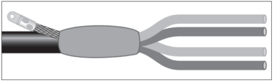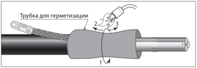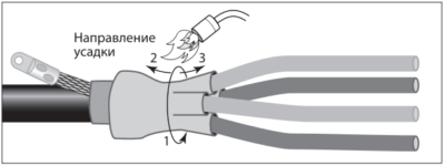Прежде чем продолжить термоусадку вдоль кабеля, трубка или перчатка должны быть усажены по кругу.