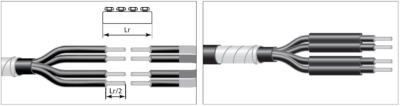 Для муфт на кабели среднего напряжения особое значение приобретает отсутствие воздушных пустот и «карманов» внутри муфты. Пространство между жилами должно быть заполнено герметикомзаполнителем. Корни разделки кабеля под перчатками также должны быть заполнены герметиком для исключения воздушных пустот и предотвращения ионизации воздуха. Резкий перепад уровней в местах соединения «болтовой соединитель — жила» также должны быть сглажены и заполнены герметиком.