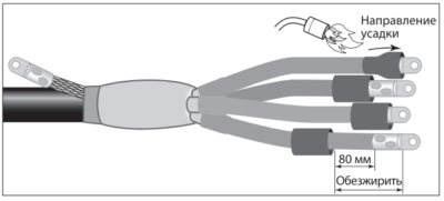 При усадке «пальцев» перчатки не допускать перегрева ПВХ-изоляции жил кабеля, что может привести к ее разрушению.
